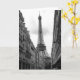 Hälsningkort som presenterar ett foto av en Parisian gata och det Eiffel torn.