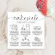 Modern Cakesicles Care Card med elegantens skript, typsnitt och vårdikoner. Detta minsta kort för förvaring och förvaring av svarta och vita glasflaskor innehåller den viktigaste informationen om hur man tar hand om kakor, ett tackkort och utrymme för logotyp och kontaktuppgifter för bageriet. Perfekten läggs till i utformningen av ditt bageriemballage i cacheminnet.