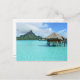 Vykort med lyxövervattensbungalow i den blå lagunen på den pacifistiska ön Bora Bora, nära Tahiti i Fransk Polynesien. Se även: