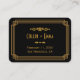 De här platskorten har en svart och guld-färg-palett, ett geometriskt ram och andra stilistiska detaljer som alla inspireras av Art Deco och de kommande 20-talen. Du kan anpassa exempeltexten till fält.