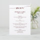 Enkla burgunga bröllop-menykort med anpassade text, utskrivet på papper av filt