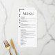 Behålla din bröllopsmottagning ren och modern med det här minimalistiska svarta och vita menykortet. Designat med elegantens enkelhet i åtanke har den här menyn lodrät en fetstilt typografi och en strömlinjeformad layout för visning av måltider. Ett tidslöst val för svart slips, formell bröllop eller contemporary och enkelt att anpassa med anpassningsbar-menyn.