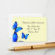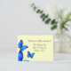Dessa små visitkort i bröllop är ett mycket sparsamt sätt att lägga till mottagningsinformation till inbjudningarna, eller vilken information som helst som du vill att dina gäster ska veta. Korten i bröllop är gjorda i en blek gult med ljusblå fjärilar. Anpassa texten på framsidan och tillbaka till kostym efter dina behov.