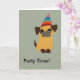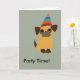 Designen för mopsfödelsedagkortet, bakgrundsfärg kan redigeras.