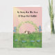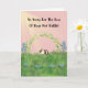 Kort för förlust av sällskapskanin med en illustration av en kanin i mitten av en delvis lagerkrans av gröna blad, blå blommor, gräs och en ljusstråle. Underbart kort att skicka till en vän eller familjemedlem som har förlorat sin sällskapskanin. Tack till hungryjpeg för några av elementen i designen.