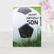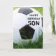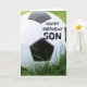 En klassikerfotbollboll i det högväxt sommargräset med ordgrattis på födelsedagensonen! Perfekten för din favorit- fotbollfläktson och anpassadet för att dig totalt ska personifiera som dig behar!