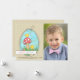 Överför påskhälsningar till familjen och vänner med detta nyckfulla fotokort som presenterar ettformat fönster med två bebischickar som leker nära en champinjon. (FP)