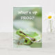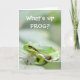 Ett hälsningskort från en grönt träd grog, sitta på löv med texten: "Vad är det, Frog?", en analogi med Kryp Bunny som säger "Vad är det, Doc?" Du kan skicka det här till en vän.