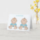 En humoristisk teckning på twillingar sitta sida vid sida med texten och klistra in på deras skjortor.