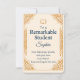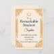 Med detta kort för grattisar i elegant hedrar du ett anmärkningsvärt student, designat för lärare, skolor och stolta föräldrar som vill fira akademiska landvinningar på ett meningsfullt och personlig sätt. Det här kortet har en förfinad bakgrund för parchment-stil, guld gräns, och en symbolisk bok-ikon - perfekt för att känna igen en tonåring pojkes engagemang, tillväxt och anda. Det främsta budskapet lyder: "Till ett enastående Student - ert engagemang, er tillväxt och er anda har verkligen skugnat. Behålla för stjärnorna." 🎓 Anpassa kortet med student's namn för att skapa en varaktig keepsaké som de kommer att uppskatta. Vare sig det gäller en utmärkelse i slutet av året, studenten, eller ett klassrum firande, är detta kort ett hjärtligt sätt att säga "Jag ser er insats, och jag är stolt." Kortets baksida innehåller anpassadet "Från"-rad, förfylld med Från: Lärare - helt redigerbar av kunden till kostym, oavsett om det är en mentor, förälder eller skoladministratör. Den här designen är skräddarsydd för tonåring pojkar, men kan enkelt anpassas för alla student. Klicka bara för att redigera namn och meddelandet som matchar tillfälle.