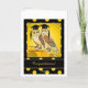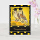 Ett sött humoristiskt grattis i studenten med en originalmålning av två uggla i guld, gult och svart.