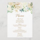Vårt fauxguld omkullkastar, och vitblomman bröllopmeny somkort har att uttrycka det, är fullständigt anpassadet. AnvändaZazzles verktyg "personifiera för denna mall" för att skriva in din egna information. Om du behöver att ändra, boxas placeringen av texten, stilsortsfärg, eller storlekt klicka precis på "klickar för att skräddarsy vidare" knäppas för att ändra de saker. Var säker att kontrollera ut vårt stora val av koordinerande objekt, genom att bläddra för guld och den blom- bröllopsamlingen för vit!