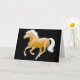Original- konstdesign av en snabbt växande palominoHaflinger häst på ett kvalitets- hälsningkort av märkes- Carolyn McFann av studion för två spinnakatter.