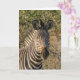 "Ansikte i en Zebra" - Bilden av en zebra, fotograferad medan den fotograferades på safari i nedre Zambezis nationalpark i Zambia är ett vackert sätt att nå ram med ett personligt budskap om uppmuntran, grattisar eller helt enkelt "att tänka på dig". Bilden på det här hälsningskortet kommer säkert att glädja mottagaren av ert tankeväckande budskap. [DSC6984] ©John S. Baker