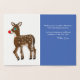 Vackert handmålat Whimsical Reindeer jul Greeting Card med en dekorativ bild på framsidan av kortet. Kortets framsida har ordalydelsen, God jul, tomten är på väg. Insidan av kortet har fullt av min tecknade figurer Toppen Snö, den blåögda renen en vit baby-knapp som slår renar med vita fläckar på hans bruna hårig jackar och en röd näsa med blått. Ett speciellt meddelande skrivs på kortets höger med blå bakgrund. Lämna ordalydelsen som den är, eller ta bort och infoga ditt eget speciella budskap. Baksidan har Peace skriven i folie. Originalteckning, Kortets verse © TamiraZDesigns.