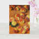 Monet Peacher-hälsningskort. Oljemålning på arbetsyta från 1883. Monets 1883 är en av de mest populära persikofärgade målningarna och fångas fortfarande med stor skärpa upp orangen på riken och gulterna på sommarpersikor. En underbar gåva till fläkt av Claude Monet, impontionism, persikor och Fransk konst.