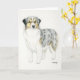 Denna hälsningbil presenterar en reproduktion av min original- färgpennateckning av en australian shepherdhund.