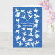 Ett anpassadehälsningkort för påskhögtid, med vitduvor på en blåttbakgrund. Den inre hälsningen, som du kan ändra eller ta bort, är "den lyckliga påskhögtiden". Från en handpainted papper collage av Judy Adamson.
