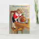 Kort för vintage-/Victorianjulhälsning. Förtjusande barn som beundrar en stor plommonpudding! Julhälsning! En dag av glädje, ler ett år av nöje, utan snålhet, uppsluppenhet without mäter!