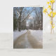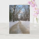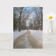 Övervintra fotografikortet. Förbigå hälsningkortet med snö längs enfodrad grusväg.