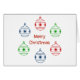 Juldekorationer omgivande hälsning på täckmantel. Röda, grönt och blå träd-dekorationer med centrala stjärnor. I den centrala texten står det "God jul". Inuti finns tre bollar i det övre lämnat hörnet med ett hälsning att anpassa (standard till - Bästa önskemål för säsongen och det kommande nyåret)"