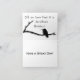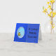 Gult fågel på gren ses genom ett ovalt fönster i det blå ram på kortets framsida. Texten till högerna lyder "En liten fågel sa mig". Inuti på överkanten finns en fågels svarta silhuett på ett vågrät gren med texten "Visste du att det är Geraldins födelsedag?" (Anpassa namn och tillfälle) Grund på kortet lyder "Ha en Underbar dag!"