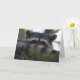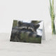 Den här maskerade bandit-tvättbjörnen bor i det stora träd på min framgård, varifrån han tillbringar sina kvällar och kikar över min tak! Jag överraskade honom i träd en vridsbelysning. I det här fotot har han återbehandlats till sin favorit gren, klippt sitt svarta och vita strimlade svan över näsan och toppar över det med sin två gnista, svarta ögon i sin svarta mask som torkar ut på oss. Den vita randen över hans ögon kontrasterar mot grått-framinnan och öron. I förgrunden suddas några gröntar löv ut i svan, med grått-brunt grenar och vitt himmel i bakgrunden. Copyright Gail Storrs 2010
