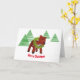 Renar med grönt krans runt nacke. Nedanstående böjd text lyder "God jul" Bakgrund med fyra träd skapat med vågrät grönt linjer. Huvudbilden av den krockade dockan leksak i brunt och vitt.