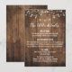 Kortet med små detaljer, använda för ytterligare information om bröllop eller händelsen. Träbakgrund med mjölkkort för ljus.