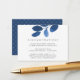 Designat för att samordna med vår pressade botaniska bröllop-samling i Indigo, har korten ett svart bokstäver med en sprit av koboltblått vattenfärgblad som täcker ditt hotell eller din logikinformation.
