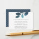 Designat för att samordna med vår pressade botaniska bröllop-samling i Ultramarine, har korten ett svart bokstäver med en sprit av mörk teal blue water color foliage som täcker ditt hotell eller logi.