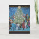Vattenfärgmålning av carolers som sjunger runt om ett julgranhelgdagkort. Målningartighet av Jeanne Selby.