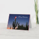 Den här saguaro cactus är utklädd för en festsäsong! Den här kaktusen bär en julhatt och jultoma ljus som lyfts fram vid kvällsolnedgången. Detta är ett så roligt sätt att önska er familj och vänner ett God jul. Inuti finns en underbar hälsning och din anpassningsbara text.