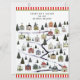 Roligtens helgdag-nedtoning-aktivitetsdesign, med en julby på 24 miniatyrhus som leder till ett gingerbrödhus.