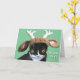 Ett roligt jullkort med en svart katt med renar Julhälsningar
