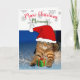 Anpassa det här kattkortet med ditt eget namn eller hälsning. Julkortet har ett vackert tabby katt med en julhatt.