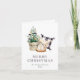 Detta mysiga rustiska helgdag-kort har en vattenfärgad illustration av bondgårdar stil, ett miniatyrhus Julgran och ett litet hus. Ord "GOD JUL" visas i grått serif brev som koordinerar med konsten. Lägg till familjens namn och året på framsidan och ett meddelande inuti kol grått kurcs. Ett samordnande mönster av helgdag motiv, med en söt gnom i mitten, visas mitt emot texten.