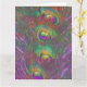 Det här vackra hälsningskortet innehåller ett roligt av ett fotografi av vissa fjädrar från påhitt som tagits med hjälp av makrofotografi. Konstgjorda färgtekniker har använts för att betona detaljerna. Resultatet blir en lila- och smakförändring där ögonpunkterna visar röda nyanser och grönt.