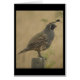 Denna manligKalifornien Quail skyddar en covey av barn i några närliggande buskar.