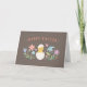 Ett sött hälsningskort i Påsk med en lekfull illustration av chicken.