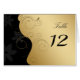 Kort för lyxfritt bordsnummer i guld och svart med blommigt snurrar. Detta är hela produktraden "Luxury Guld-Black" i bröllop: