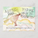 Späd liten fågel som håller en köksväska i näsan på matlagnings- eller bakmatningskortet för din keepsakspokbok eller som delar dina favoritrecept på djurhållaren.