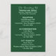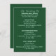 Lämna närmare uppgifter om ditt register över bröllopsmottagning, logi och gåvor till dina gäster med denna monokroma smaragd grönt färg, enkla texter och ett enkelt utformat visitkort för bröllop, en design för par eller värdar som associerar grönt färg med trohet och lojalitet. De betraktar grönt som en symbol för ett ständigt kärlek och engagemang. Ett mönster för dem som också föredrar naturtemat eller vanliga texter och enkel design utan någon sak i bakgrunden. Texterna är i centrum i stil. Typsnitt är en kombination av kalligrafi och skript för att förbättra stil och sans serif för läsbarhet och tydlighet. Anpassa den genom att skriva information om bröllopsmottagning, logi och presentregister. Ange även namn för briden och trimmen, dag, datum och plats för bröllop. Kontrollera utseendet på fram- och baksidan när du har skrivit text. Om utseendet passar dig, kan du göra din beställning nu i ställe ställe. Om du behöver ändra storlek på och placera om texterna så att de passar på det här kortet eller på den storlek du vill välja, justera i designen verktyg. Du kan också ändra teckensnittet stil, teckensnittet färg och färg i verktyg. Grattisar på din förlovning! Jag önskar dig en livstid fylld med kärlek och lycka.
