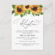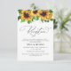 Kort för mottagning av solrosbröllop. Den här inbjudan till snyggt och elegant bröllop har en fantastisk, handmålad vattenfärg Solrosgrönska. Sök efter matchande objekt i solrosgrönsakssamlingen.
