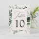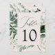Elegant, botaniska bröllop bord-kort med bordsnumret inkapslat i ett rektangulärt ram omgivet av eukalyptus, ferns och annan rik grey med krämbakgrund. Anpassa numret för varje bord-kort och lägg till det i din kundvagn. De fem x7-bordsnumren var designade att samordna med vår samling Abundant Greenery bröllop.