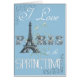 Vilken en älskvärd och söt ode till Paris och springtime! Denna collage, uppsättningen på en rogivande blåttbakgrund, älskvärd vintagetypografi för särdrag av ord PARIS med det Eiffel torn, texten "älskar jag PARIS i springtimen", och älskvärda blomma- och vinegränser och en härlig blått blommade botaniskt avbildar i mittet. Så nätt. Förbigå för ditt egna personliga meddelande. Sök efter ett konsttryck eller affisch, vykortet och andra matcha Paris objekt i mitt Zazzle lager.