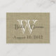 Burlap och en fluga som är tryckt på det här rustiska bröllop stil-säteskortet. Matcha inbjudningar, anpassa text efter behov. Lägg till bruden och brudgummens namn med ett monogram och bröllop-datum längst bak. Den här produkten är tryckt. Ingen riktig knäpp och ingen riktig båge ingår i den här produkten.