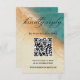Sätt tonen för din romantiska strandbröllop med denna fantastiska inbjudan som visar en akvarellmålning av havsstranden i varma solnedgångstoner i teal, orange och sandigt beige. Elegant kalligrafi och moderna typsnitt skapar en perfekt blandning av sofistikering och kustcharm. Perfekt för tropiska, strandnära eller destinationbröllop, är denna mall helt anpassningsbar med namn, datum, tid, plats och RSVP-information. Ett vackert val för sommarfiranden och strandceremonier.