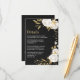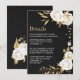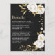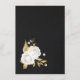 Romantiska vita blommor och guld löv svart detaljförslutningskort. Uppgifterna om glitter simuleras
