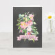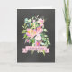Kort för Grattisar med rosa blommigt buquet vattenfärgsdesign och svart krita.